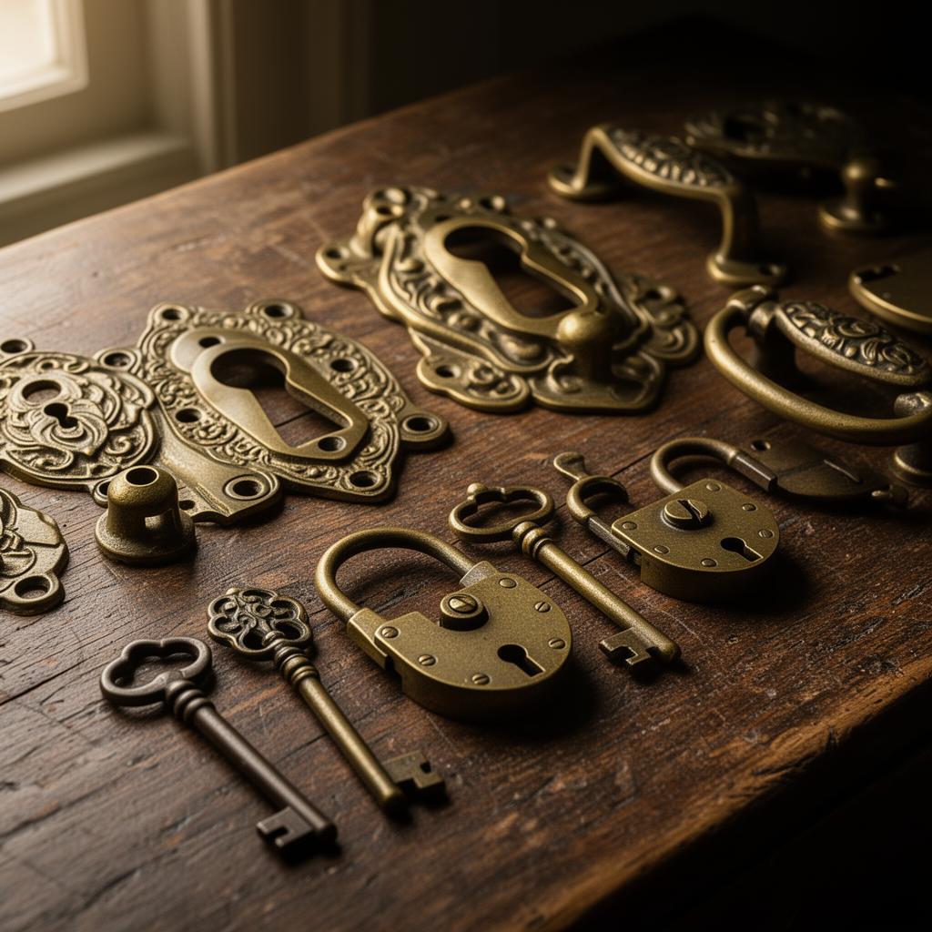 Für Restaurierungen halten wir originale und nachgefertigte Komponenten bereit — vom Beschlag bis zum Schloss.